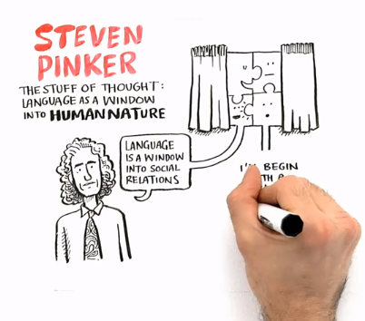 I’m a big fan of Harvard’s Steven Pinker and RSA Animate makes his excellent talk about language and human nature even better. If you enjoy the talk, I highly suggest his influential book, The Language Instinct. Incidentally, it was the first book I was assigned in university linguistics, is one of the only assigned books from university that I still own, and is the only college text I actually reread regularly for fun…
