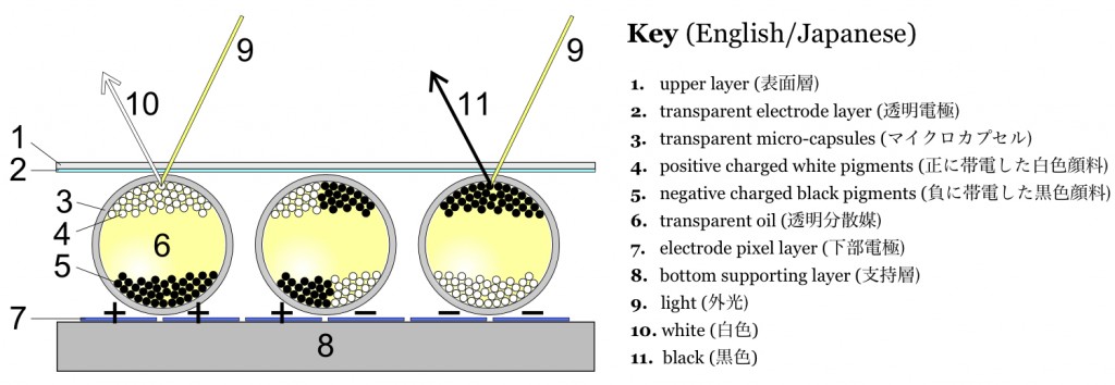 1) E ink is easy on the eyes and your battery. Unlike the pixels used on computers and smartphones (which can wreak havoc on your eyes and zap your battery), the Kindle’s use of E Ink creates a reading experience pretty darn close to physical books, all while consuming very little battery life. They accomplish this amazing feat by employing millions of itsy-bitsy, electronically charged “microcapsules”, within which there are tons of little black pigment pieces and white (or rather, light gray) pigment pieces. Text is produced by causing the black pigments to run to the top of specific microcapsules, while the background is created when the gray pigment is forced to the top. The Kindle display is also much easier to read outside in the sun, while most other devices (including the iPad, iPhone, and iPod touch) suffer from serious glare problems.